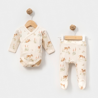 MİNİSSE UNISEX 0/3-3/6 AY GEYİK BODY BATTANİYE SET